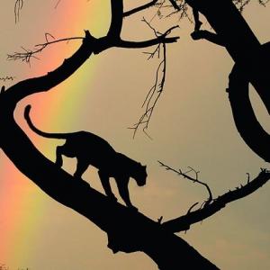 Photo by Beverly Joubert @beverlyjoubert | A stark but unmistakably feline silhouette is set against a colorful sky of rain. I always think it is lucky to see a leopard; with their phenomenal talent for disappearing in plain sight, it’s entirely up to them whether or not they’ll show themselves. Finding a leopard at the end of a rainbow must be especially lucky. Their luck in living with us, however, is running out. Leopards have lost 75% of their historical range, and while they are incredibly adaptable, there’s only so far that they can conform when their prey is less adaptable and the pressures from our activities are only increasing. In order to protect big cats like this, we need to conserve at least 30% of the planet by 2030. #CampaignforNature#ThisIsMytrophy #Leopard#BigCats