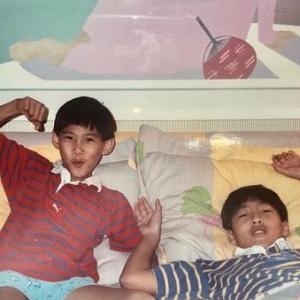 A few days past #nationalsiblingdaybut just came across this picture recently. ? Our first time to Vegas and got upgraded to the Penthouse suite at The Mirage, with a TV that raises up at the end of the bed. Definitely the hottest thing back in the day, that I had to flex on em haha. Since moving to Asia, haven’t got to see my brother much at all in the past 10+ years. Looking forward to our end of the year festivities! @johnmao#matchingshirts #puma#butwhyyousotired #weinVegas#memories